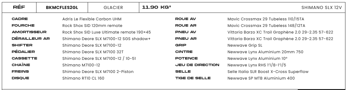 Le Flexible a été pensé pour être compétitif sur tous types de terrains. Il saura vous garantir confort, performance et légèreté pendant vos sorties. Sa polyvalence et son design agressif ne laissera personne indifférent. La géométrie du cadre est minutieusement étudiée pour garantir une maniabilité optimale. Un empattement équilibré, des angles de direction et de tube de selle bien ajustés, ainsi qu’une hauteur de boitier de pédalier calculée avec légèreté.