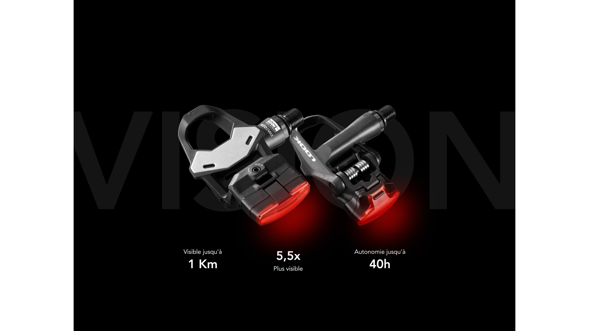 Les pédales LOOK Keo 2 Max Vision renforcent la sécurité grâce à leurs lumières visibles par les usagers de la route à 1 km, de jour comme de nuit. Elles sont entièrement intégrées, faciles à retirer, aérodynamiquement optimisées, durent jusqu’à 40 heures et se rechargent via USB-C.
